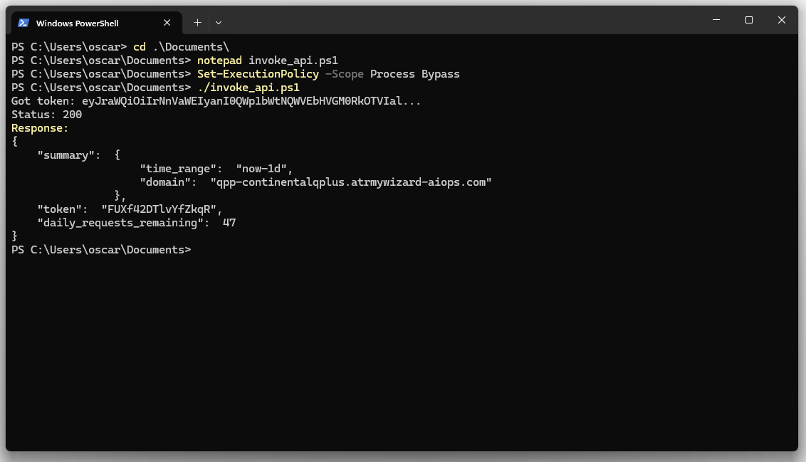 Run the PowerShell script with the following command: ./invoke_api.ps1