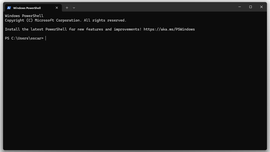 Open PowerShell by searching for "PowerShell" in the Start menu. Verify that PowerShell is running by checking the window title displays "Windows PowerShell".